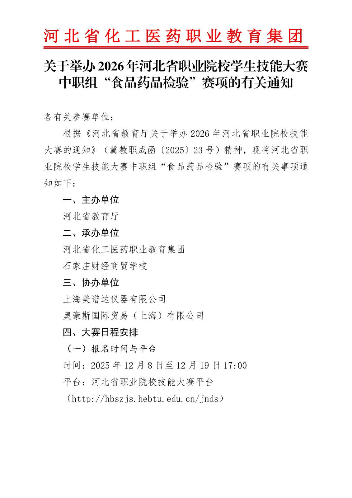 2026年河北省职业院校中职组“食品药品检验”大赛通知