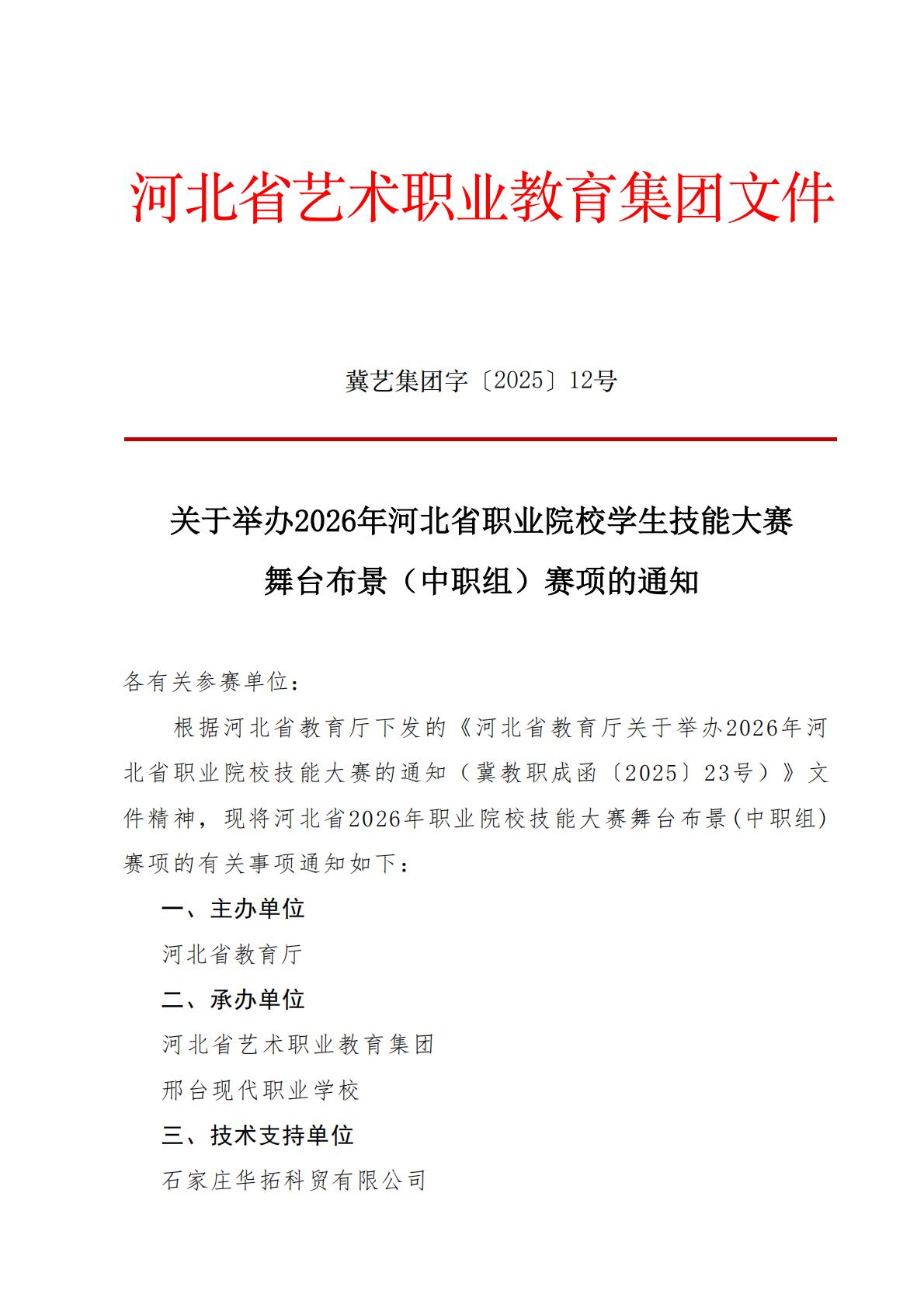 关于举办2026年河北省职业院校技能大赛“舞台布景”(中职组)赛项的通知