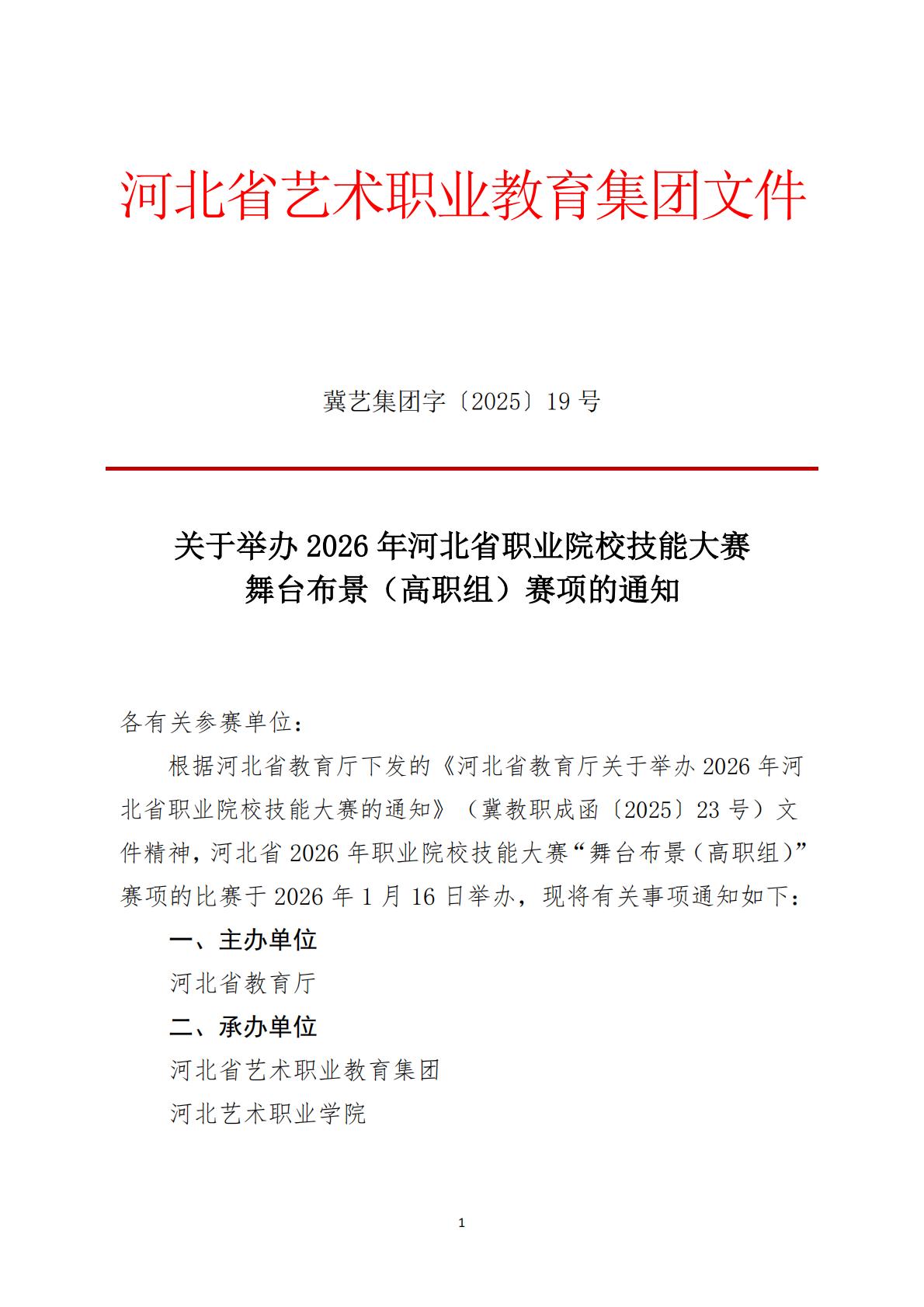 关于举办2026年河北省职业院校技能大赛“舞台布景”(高职组)赛项的通知